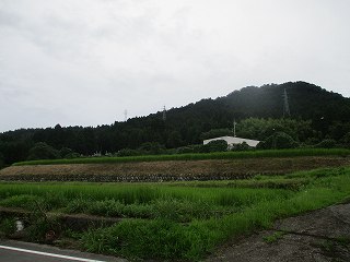 | 西方から遠望する横尾城。 | 最初間違って違う林道に進んでしまった。その林道に入るためのゲート。 |