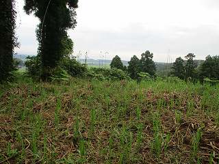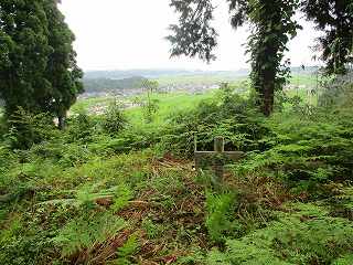 | その先にある井戸だが、ヤブでよく分からない。 | 1郭に到達した。南西端は眺望が開けている。 |