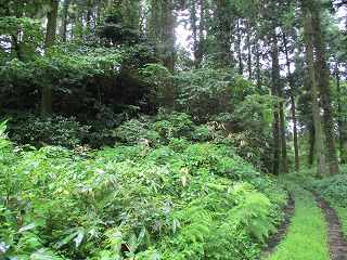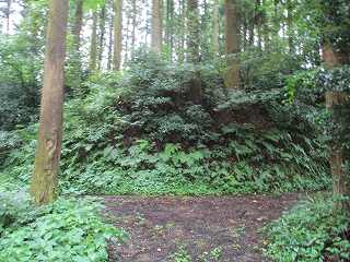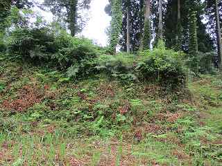 | 1郭東下の郭。ヤブで入り込めない。 | 1郭の城塁。 |