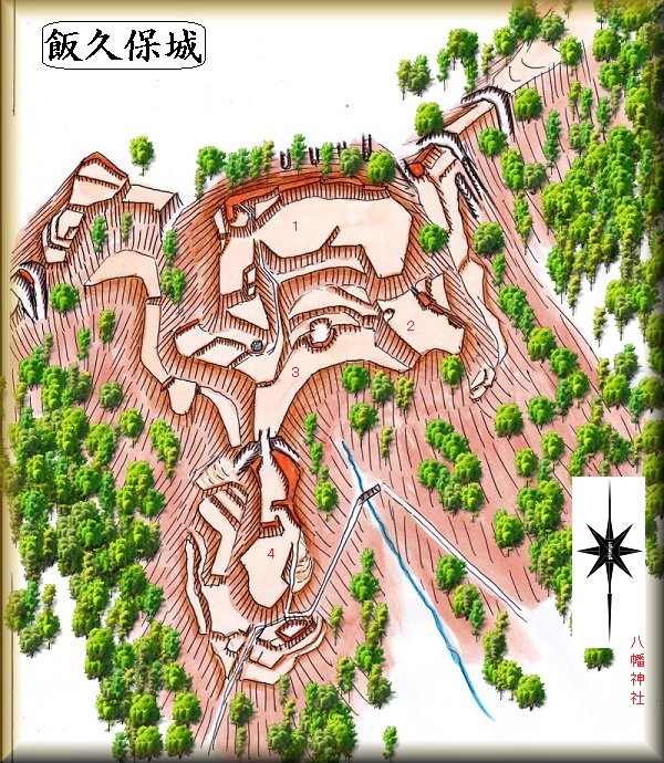 天正13年(1585)、佐々成政が秀吉に降伏して越中を去ると、狩野氏も没落してしまったらしい。その後の狩野氏の消息は不明であるが、飯久保城も廃城となったのであろう。