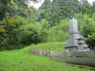 | 途中の林道。晴れていれば車で通れる。 | 中腹にある墓地。 |