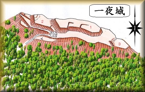 2人の武将が一夜を過ごしたことから一夜城と呼ばれるようになったというのであるが、これはいかにもこじつけく際話である。実際にはもっと別の由来があったのではないだろうか。
