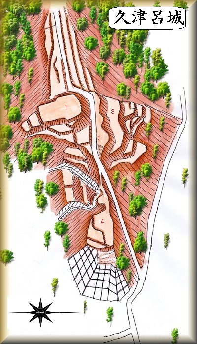 久津呂城は、地元豪族であった崩(くずれ)氏の居城であった。久津呂城という珍しい名称は、この「崩」からきているのだと思われる。