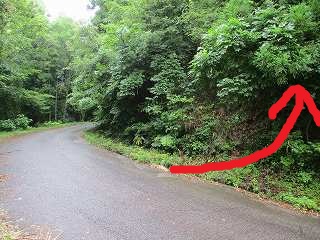 この林道は中腹にある墓地に行くためのもので、終点には駐車スペースもある。晴れていれば車で行けそうな道であるが、この日は雨だったので、スリップを恐れて、車は道神社の辺りに停めさせていただいて、歩いてアクセスすることにした。