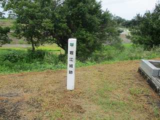| 先端近くにある城址標柱。 | 南側の堀跡か。 |