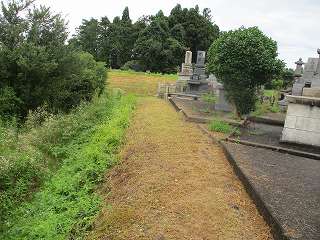 | こちらも南側の堀跡のように見える地形だが、墓地の造成による改変かもしれない。 | |