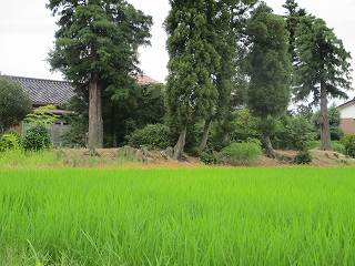 台地上に上がって行くと、城内は一面の水田地帯である。また先端部近くと周辺部には墓地が造成されている。一見して遺構らしきものはまったくないように見える。