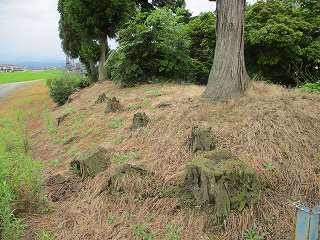 先端部分の墓地の間には城址標柱が立てられており、これだけがかろうじてここが城址であることを示しているのみである。