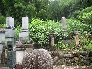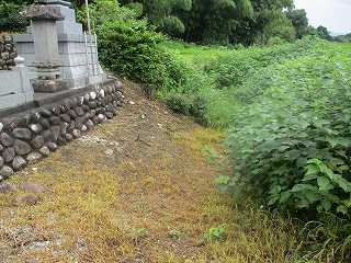 それにしては内部は全面的に墓地になってしまっているし、土塁の上まで墓がびっしりと建ち並んでいる。また、周囲を巡っている堀もヤブでその形状すらわかりにくいような状態になってしまっている。あまり城址として大事にされていないように感じてしまう。