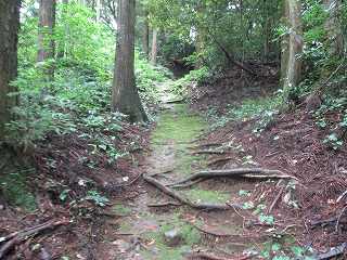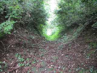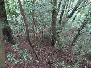 | 熊野神社。 | 北側の尾根下の堀切部分。 |
