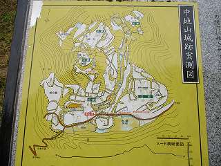 中地山城はこのように実にたくさんの郭を造成した城郭であるが、上記の通り全体構造に収斂性が乏しく、どこが城の中心であるのかもわかりづらい城である。城域が広大なのはいいが、かなり守りにくい城郭だったのではないかという印象のものであった。