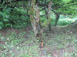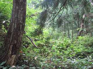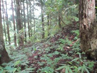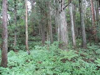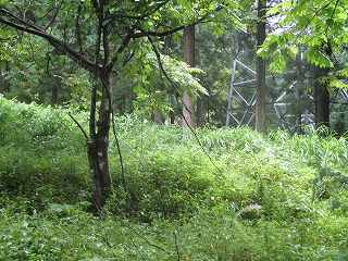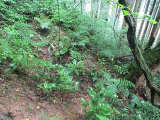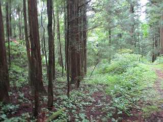 ただし、登城道はない。ヤブをかき分けながら登って行くのである。普通の天気ならばそれでもどうということはないのだが、この日は雨が降っていた。雨に濡れたヤブをかき分けながら進んで行くと、そのためにずぶ濡れになってしまう。