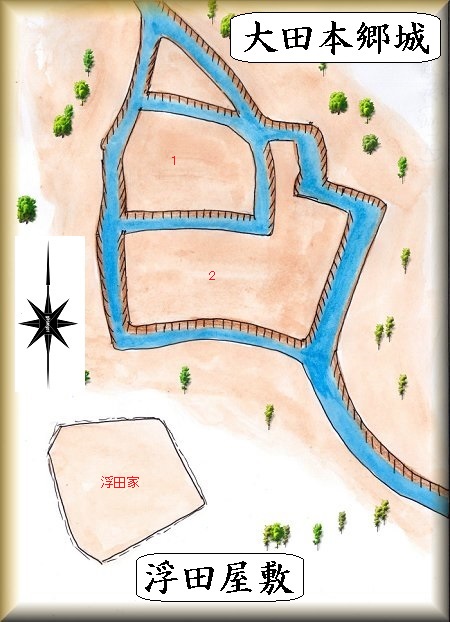 長実の書状に「新庄、大田二か所の寄居」とあるのが、新庄城と、この大田本郷城のことであると思われる。