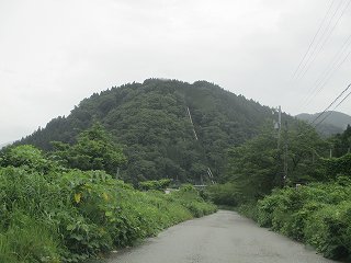 | 南方から見る寺家砦のある山稜。ここからの比高は50mほど。 | 姉倉比亮神社の左手から登って行く。 |