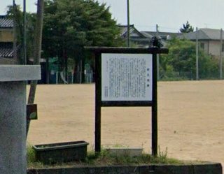 小学校の校門を入ったところに案内板がポツンと建てられているのみである。