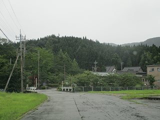 | 湯端城のすぐ下を削っている道路。この右手のすぐ上が城址となっている。 | 城のある土手の東端辺りから入り込んでみると、すぐに南側の堀が見えてくる。 |