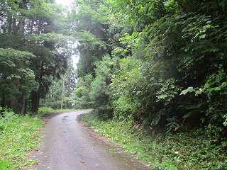 この山を下から登ると疲れそうなのだが、幸いなことに山稜のかなり上の部分に水力発電所の池が造成されていて、そこまで舗装された林道が付けられている。林道の入口はこの場所である。