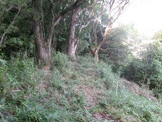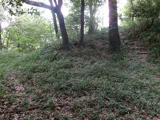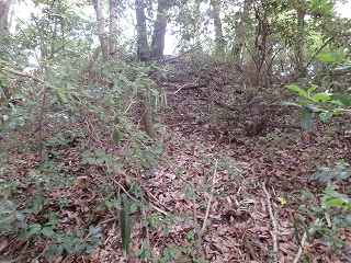 山稜上のあちこちに削平地が見られ、尾根に沿って土塁も構築されている。虎口と思われる箇所もある。