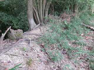 現在、山稜のすぐ南側には桜台団地が営まれており、そこからVの城までの比高は20mほどとなっているので訪れやすい。