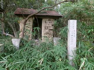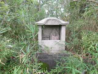 登城道を進んで行くとすぐにVの城の下の祠の所に出ることができる。