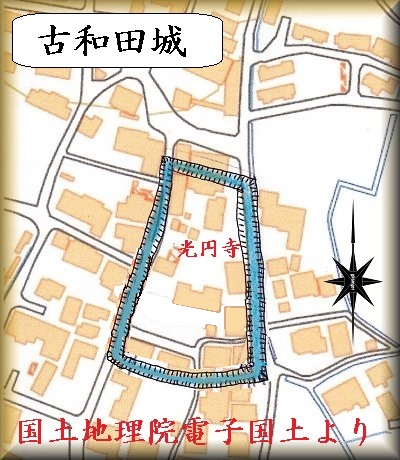 j地元の伝承では、古和田城の城主は和田氏であったという。和田氏はその後和泉国に移り「岸和田城」を築いた。