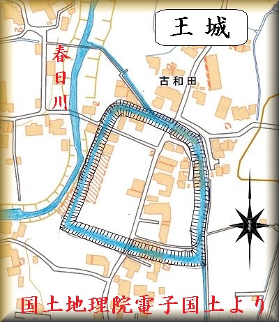 王城は、春日川が蛇行する地点の東側に築かれていた。