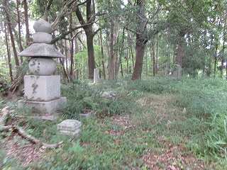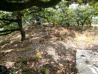 畑の中を進んで行くと堀切と土橋があり、その先が墓地となっていた。この辺りが矢倉山城の主郭というべきところであろうか。