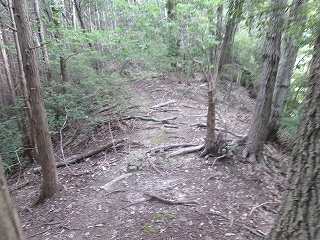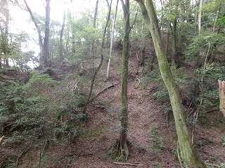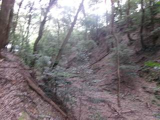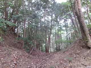 比高40mほど登ったところで、堀切が掘られていた。ここが城内までの中間地点ほどの場所である。