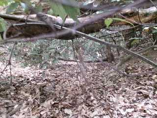 その先を南側に進んで行くと土橋付きの堀切があるようなのだが、途中からドヤブになってしまっていて途中までしか進んで行くことができなかった。