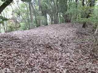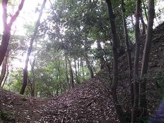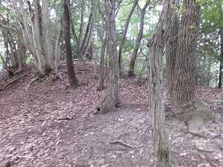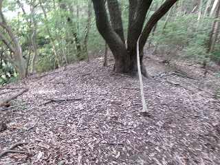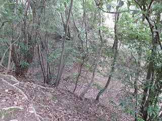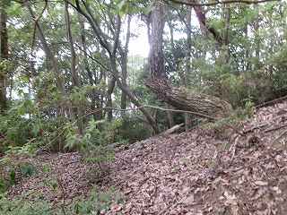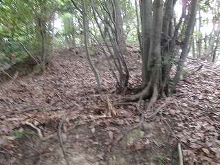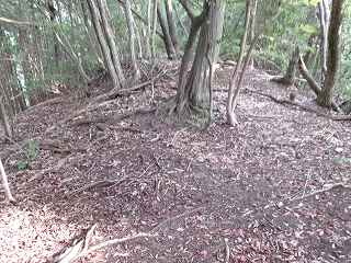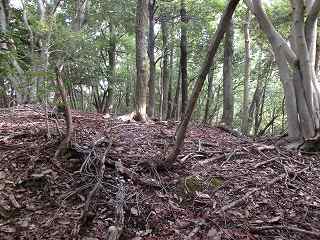 尾根は自然地形のままのように見られるが、所々段々に切岸加工がされている。