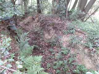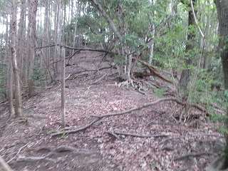 堀切は現状ではただの切通し道にしか見えないのであるが、東側に竪堀が残されているので、堀切であったことが確信できる。