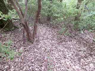 その先にも浅い堀切があり2段の平場が見られるが、けっこうなヤブである。