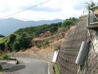 さらに県道を進んで行った所に上の畑に登って行く車道が付けられている。これを登ったところがWの辺りである。