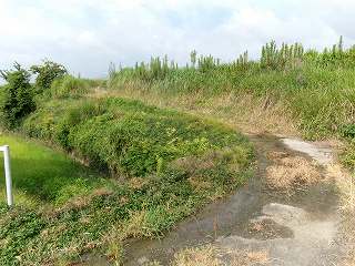 城の東側にはかつては土塁が盛られていたようである。こちらは現在では、ほぼ削り取られてしまっているように見える。