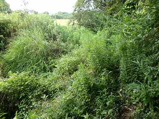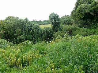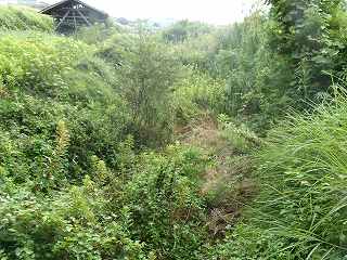幅10mほどもある大きな堀切なのであるが、こちらもヤブ化が進行中で、かなりの部分が草に覆われてしまっている。