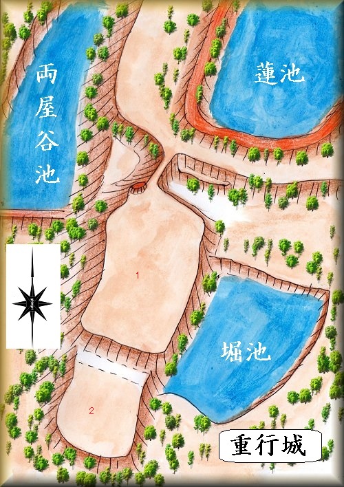城の周囲には、堀池、蓮池、両屋谷池といった池がある。