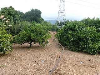 ということで登って行ったところが柿畑となっていた。その先には鉄塔が建てられている。先の階段はどうも、この鉄塔のメンテナンスのためのものだったようである。