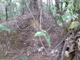 そこから南側に進んで行った所に堀切状の切通しがあった。ただし、これは切通しの通路というべきものである。まあ、城の堀切としても活用されていた可能性はあると思うが。