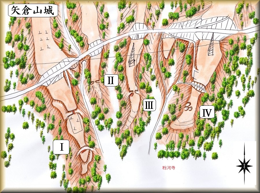 北側の山稜には南側の粉河寺方向に延びた尾根がいくつもあり、それぞれに簡素ながら城郭遺構が存在しているようである。