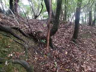 | 東尾根の1本目の堀切。 | 同じく2本目の堀切。 |