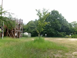 その下の広大な平場にはアスレチック遊具などが設置されている区画があったが、真夏の暑い時期ということもあってか、訪れている人はほとんどいなかった。