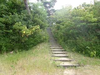 車で普通に運転できるような道なのだが、こちらの登り口には輪留めがしてあって、一般車両が進入できないようになっていた。
