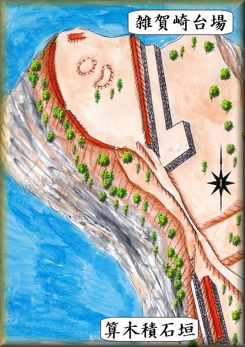 岬の周囲に土塁を構築し、あちこちに砲台を置くための切れを入れていた。