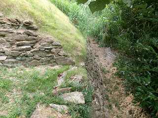 | 土塁上の墓地 | 堀切 |