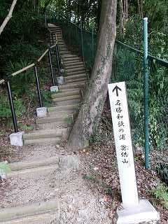 神社の背後が比高20mほどの独立山稜となっており、その上に玉津島砦があったという。和歌浦に臨む高台である。