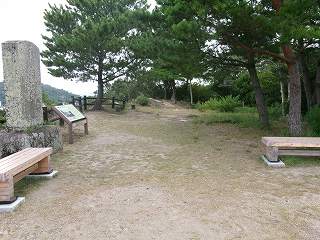 東側が最高所となっていて、ここが主郭というべき場所である。ここには大きな石碑が建てられ、古戦場の案内板が設置されていた。