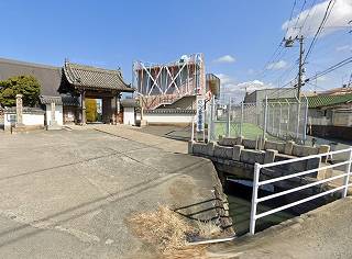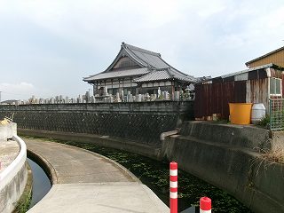 遺構は失われているようだが、南側から東側を通っている水路が、かつての堀の名残なのであろう。