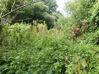 その先を進んで行ったのだが、正面の道は草に覆われてしまっていた。しかも背丈ほどもありそうなヤブである。