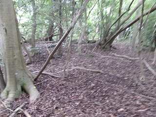 実際にはもっと広範囲に土塁があるのかもしれないのだが、ヤブで見られない個所も多く、よく分からない。
