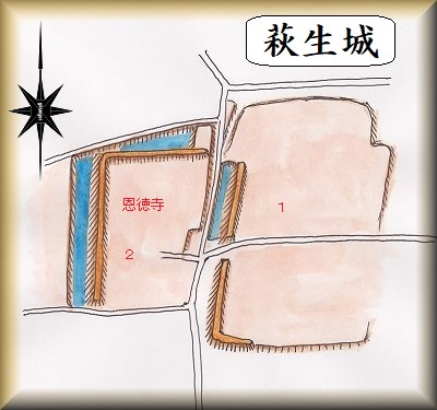 萩生駅の西方2.2km、恩徳寺のある場所が、萩生城の跡である。したがって、この寺院を目指していけば萩生城に到達することができる。